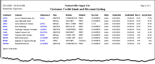 The Customer Credit Limit and Discount Listing provides information on your customer's credit limit, discount arrangements and other related data. This report together with the Aging Report is especially helpful in analyzing your customers' credit standing.