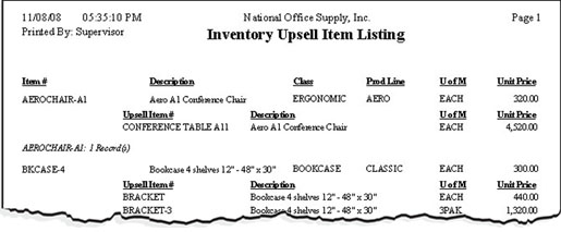 The Inventory Upsell Item Listing provides information on the upsell inventory items assigned for a particular item. It allows you to see both the inventory item and its related upsell items. This report is useful for cross-referencing inventory items with the upsell items assigned to them.