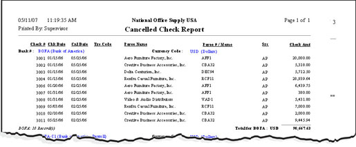 The Check Reports provides detailed information primarily on the status of checks entered into the system through the BR, PR and AP modules. Generating these reports provides a necessary audit trail; it is useful for monitoring checks status and facilitates reconciling bank accounts. Each of these reports is especially designed to provide several options so you can narrow down data to the specific information needed. Each report is also presented in various report formats.