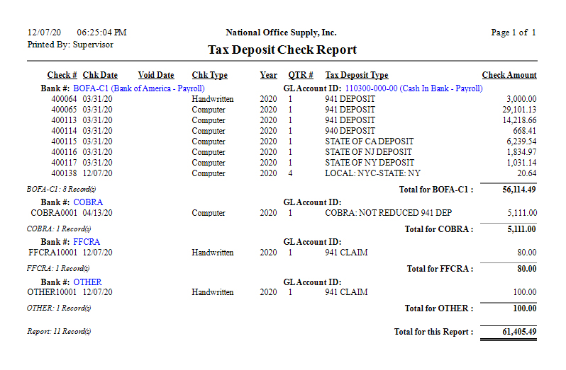 and Payroll Tax Deposit functions. These reports are helpful in facilitating
