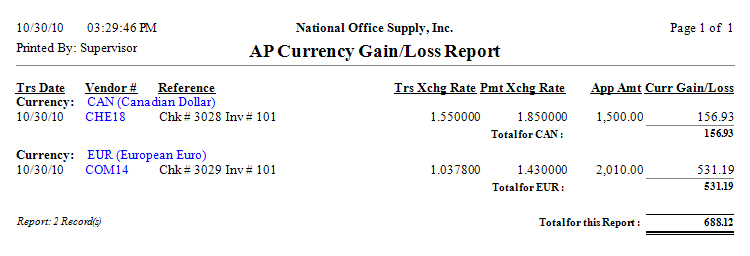 AP Currency Gain/Loss Report