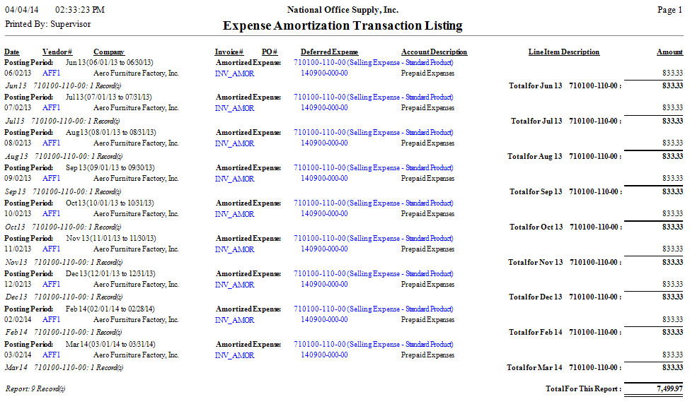 Expense Amortization Schedule Report