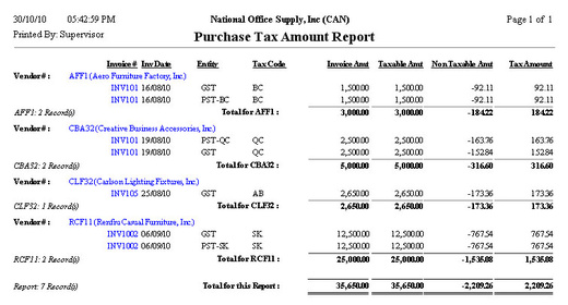 system-calculated tax amount for each taxable vendor invoice. This report is