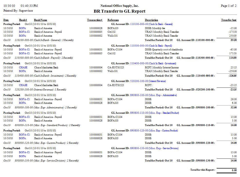 each GL Account ID; however, when you enter a non-zero value in the Criteria area > Amount field,