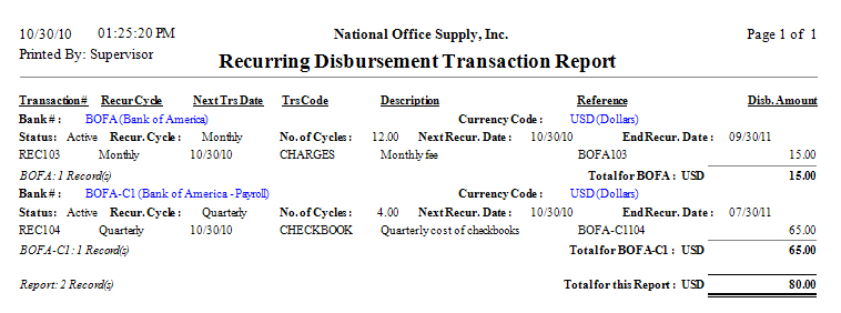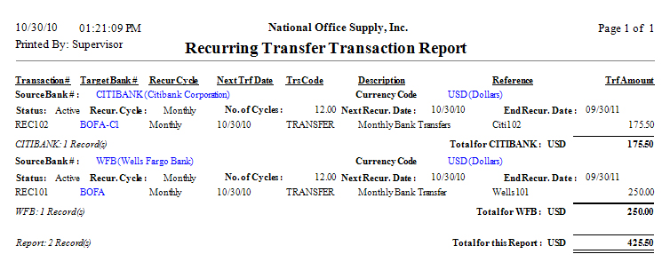 amount. This report is useful for verifying the accuracy of recurring transfer