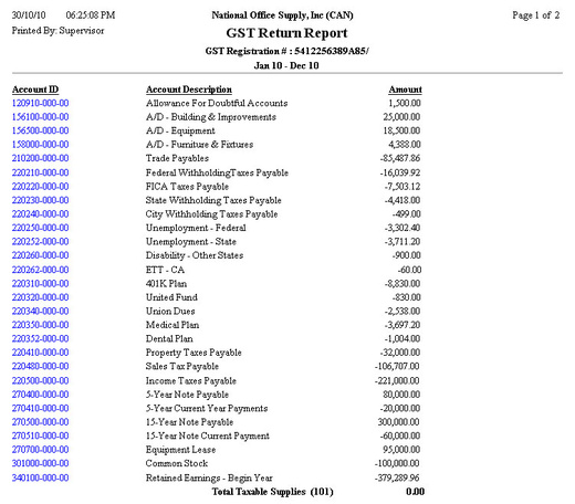 The GST Return Report is applicable for companies using Canadian GST (Goods and