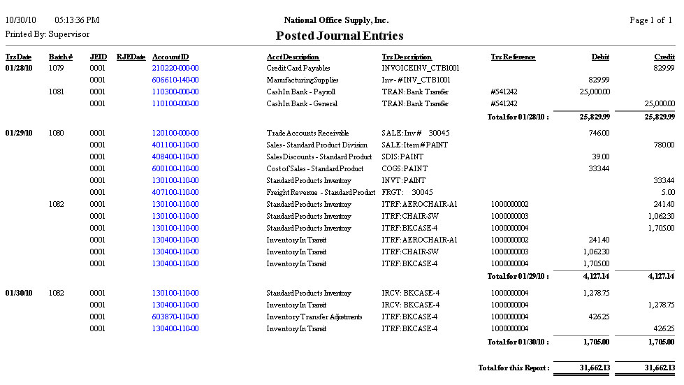 entry batch. This report is useful for reviewing the correctness of the posted
