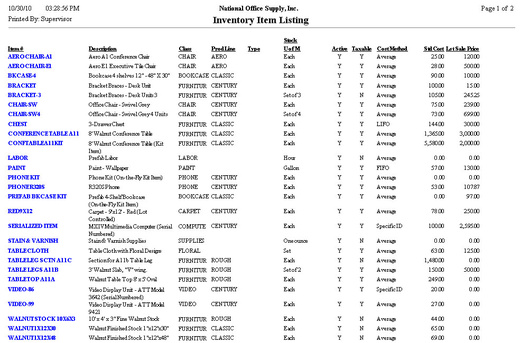 The Inventory Item Listing provides basic information about the inventory