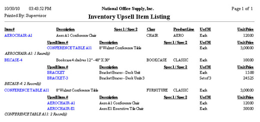 upsell items. This report is useful for cross-referencing inventory items with