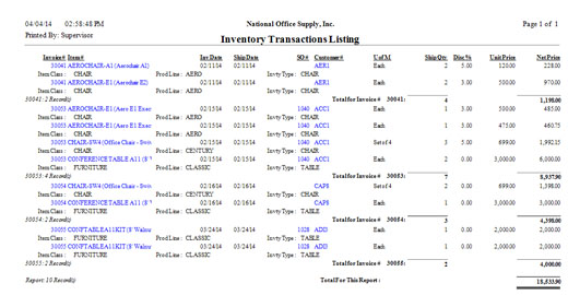 transactions involving the inventory items. These reports provide a wide