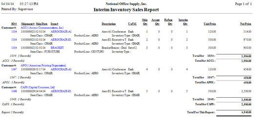 The Interim Inventory Sales Report provides information on sale prices of items that were previously shipped but are not yet accepted by the customer. The report is helpful in determining the interim inventory sale prices.