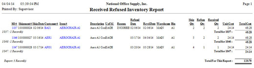 Received Refused Inventory Report