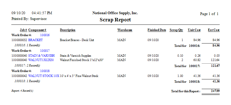 The Finished-Work Reports provide information about finished jobs, resources used on finished jobs, machine and labor resources applied to jobs, production variances, remnants, and scraps. Each of the Finished-Work Reports has various options and criteria that provide a wide variety of finished job-related information and report formats. Read the information below to get a closer look at each of the Finished-Work Reports available in AccountMate. Finished-Work Report The Finished-Work Report provides information about the completed manufacturing jobs. This report displays the work order numbers, job numbers, parent item numbers and descriptions, manufacturing levels, order dates, request dates, start dates, finished dates, finished quantities, unit costs, and extended costs pertaining to the finished manufacturing jobs. This report comes in handy when you need to evaluate productivity in terms of job completion and to monitor the cost of finished jobs in each work order. You can elect to include in the report only the master parent jobs, only the subassembly jobs, or all jobs. You can further filter the information in the report by choosing to include only the completed jobs, only the incomplete jobs, or all jobs regardless of their completion status. You can also elect to include only the parent items in each work order which finished quantities are released to inventory, only the parent items in each work order which finished quantities are yet to be released to inventory, or all parent items in each work order regardless of whether the finished quantities are released to inventory. ![]() Resources Used Report The Resources Used Report provides information about inventory, labor, and machine components that are used to finish a job. Specifically, this report displays the work order numbers, job numbers, component numbers and descriptions, finished dates, manufacturing step numbers, work shifts, time or quantities used, scrap quantities, unit costs, and extended costs pertaining to the components that have been used to complete each job. This report can be used to identify and to monitor the cost of each component used to complete a job. You can also use this report as reference in updating an inventory item's bill of materials record. You can choose to include in the report only the inventory components, only the machine components, only the labor components, or all components regardless of their types. ![]() Machine Application Report The Machine Application Report provides information about the machine resources used to complete a job. This report displays specific information including the work order numbers, machine component numbers and descriptions, job numbers, finished dates, manufacturing step numbers, work shifts, setup time, teardown time, and time used pertaining to the machine resources used to complete a job. This report is useful in identifying the machine time used to complete a job. It also serves as reference in updating the inventory item's bill of materials record. ![]() Labor Application Report The Labor Application Report provides information about the labor resources used to complete a job. This report displays specific information including the work order numbers, labor component numbers and descriptions, job numbers, finished dates, manufacturing step numbers, work shifts, setup time, teardown time, and time used pertaining to the labor resources used to complete a job. This report is useful in identifying the labor time used to complete a job. It also serves as reference in updating the inventory item's bill of materials record. ![]() Production Variance Report The Production Variance Report provides information on the completely finished jobs and the variance between the expected and actual raw material quantities, labor time, and machine time used to complete a job. This report displays specific information including the work order numbers, job numbers, component numbers and descriptions, manufacturing step numbers, actual quantities and costs, standard quantities and costs, quantity and cost variances, and production variances pertaining to completed jobs. You can use this report as reference in evaluating production efficiency and performance and in planning the use of resources in future manufacturing jobs. ![]() Remnants Report The Remnants Report provides information about the remnant items created during the manufacturing process and on the remnant items costs that may affect the finished job costs. Specific information displayed in the report includes the work order numbers, job numbers, remnant item numbers and descriptions, warehouse, finished date, remnant item quantities and unit costs, and extended costs pertaining to the remnant items created in the process of completing the job. You can use this report in identifying the remnant items created in the process of completing a job and in monitoring the remnant item costs. It also serves as reference in verifying the accuracy of finished job costs. ![]() Scrap Report The Scrap Report provides information about the scrap quantities from the component items used during the manufacturing process. Specific information displayed in the report includes the work order numbers, job numbers, component item numbers and descriptions, warehouse, finished date, scrap quantities and unit costs, and extended costs pertaining to the scrap quantities from the component items used in completing a job. You can use this report in identifying the scrap quantities from the component items used in the process of completing a job. It is also useful in monitoring and verifying the accuracy of scrap costs. ![]() |