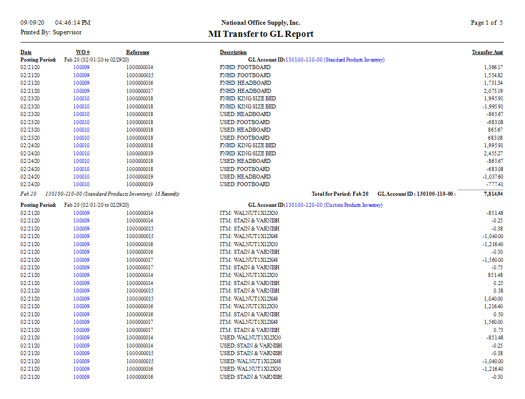 The GL Transfer Report shows the period-to-date amounts that will be transferred to the General Ledger should a transfer be made at the time this report is generated. It allows you to review the transactions recorded in the Manufacturing module. AccountMate transfers the data in this report to the General Ledger when you perform Transfer Data to GL or Period-end Closing. The GL Transfer Report provides an essential audit trail for data transferred to the General Ledger module. This report can also be used to verify the system-generated journal entries after recording transactions in the Manufacturing module. When you encounter an out-of-balance error during period-end closing or data transfer to the General Ledger, you can use this report to trace where the out-of-balance scenario originates from. You can configure the report to ignore the "transfer as summary" setting in the GL Account ID records and instead display the detailed transactions involving each GL Account ID; however, when you enter a non-zero value in the Criteria area > Amount field, the GL Account ID details will always be shown. ![]() |