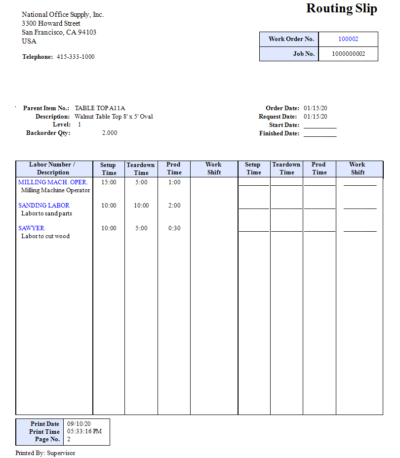 Manufacturing - Print Routing Slip