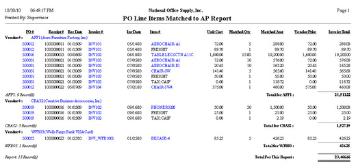You can generate this report to show all invoiced receipts, invoiced receipts that were accrued, or invoiced receipts but were not accrued. You can also opt to show the Inventory GL Account ID to which the PO line item transaction is posted and to show multi-currencies.