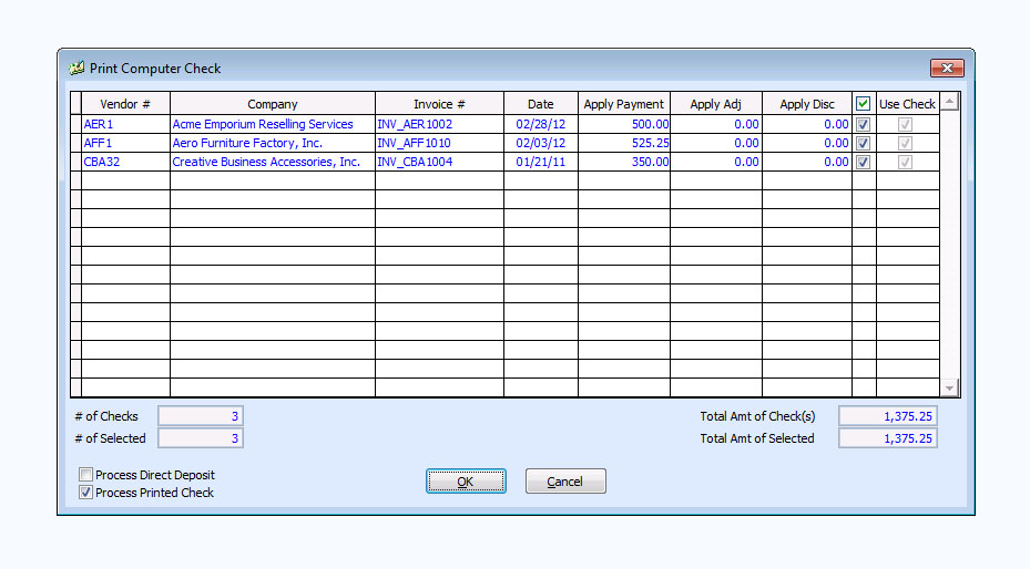 volume of checks. You can print computer checks only for invoices for which