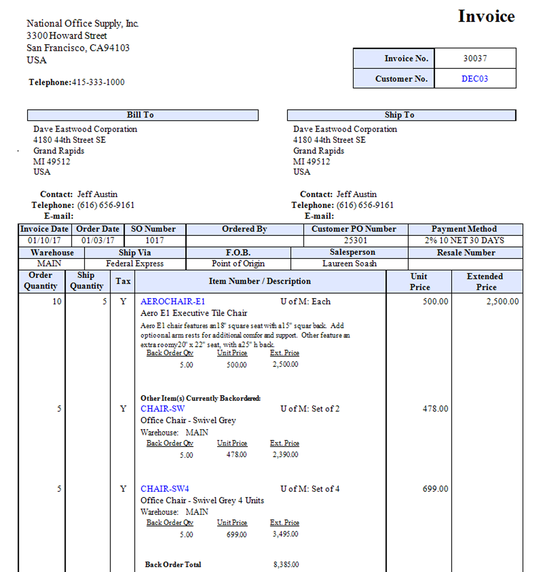 You can print invoices either on a plain paper or pre-printed form. These