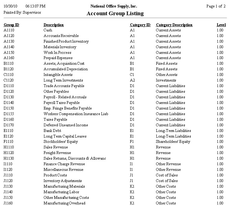 assigned Balance Sheet type, Income Statement type, and Comprehensive Income type account categories.