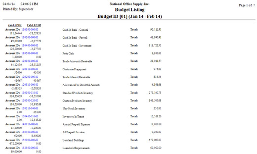 The Budget Reports provides details on financial budgets set up in AccountMate.