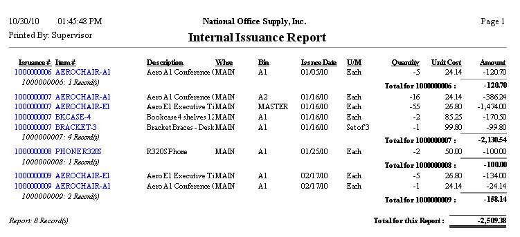 Inventory Control – Internal Stock Issuance Reports