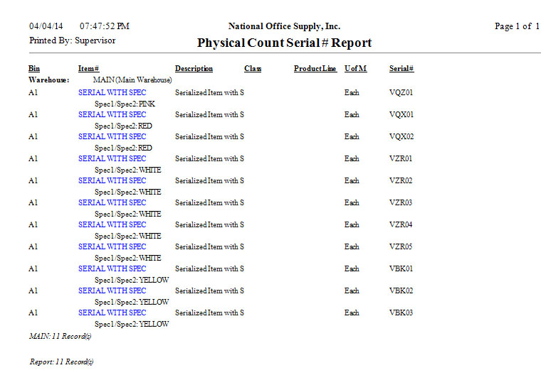 You can generate this report to show only inventory items assigned with active status, only items assigned with inactive status or all items. You can select to include in the report only items with physical inventory count