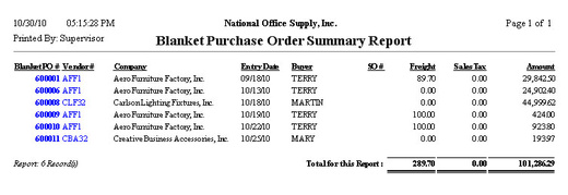 blanket purchase orders. This report is useful for reviewing the blanket