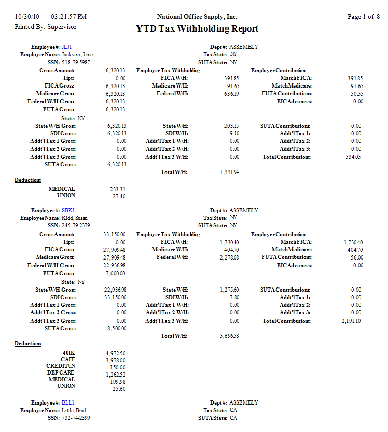 YTD Tax Withholdings Report