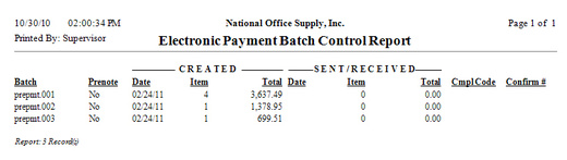 Payroll - Electronic Payment Batch Control Report