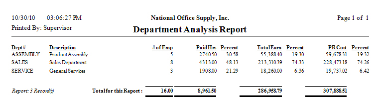earnings, and payroll costs for all employees within each department, generate