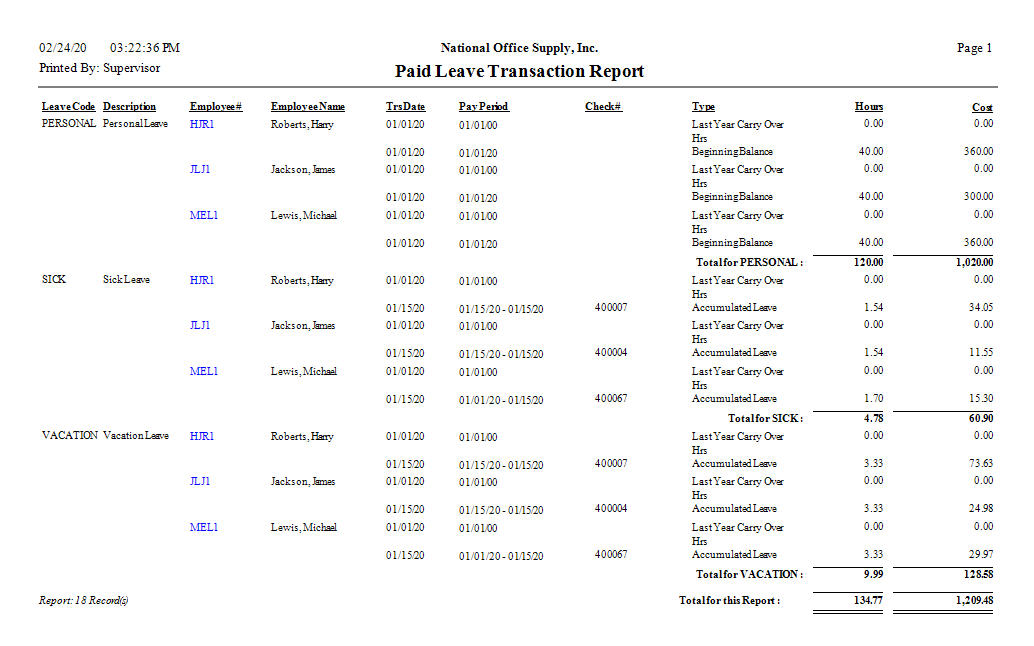 as to reconcile the total accrual by paid leave code or by employee. You can