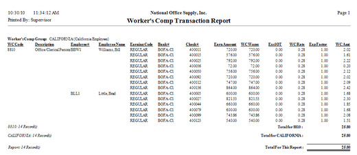 Payroll - Worker's Comp Reports