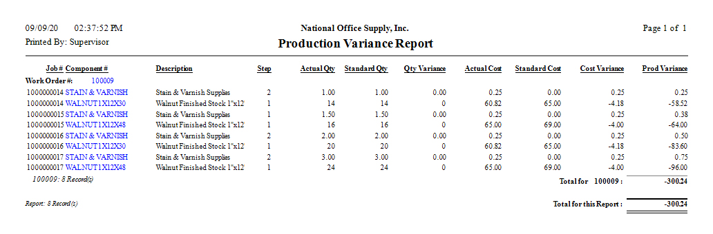 The Finished-Work Reports provide information about finished jobs, resources used on finished jobs, machine and labor resources applied to jobs, production variances, remnants, and scraps. Each of the Finished-Work Reports has various options and criteria that provide a wide variety of finished job-related information and report formats. Read the information below to get a closer look at each of the Finished-Work Reports available in AccountMate. Finished-Work Report The Finished-Work Report provides information about the completed manufacturing jobs. This report displays the work order numbers, job numbers, parent item numbers and descriptions, manufacturing levels, order dates, request dates, start dates, finished dates, finished quantities, unit costs, and extended costs pertaining to the finished manufacturing jobs. This report comes in handy when you need to evaluate productivity in terms of job completion and to monitor the cost of finished jobs in each work order. You can elect to include in the report only the master parent jobs, only the subassembly jobs, or all jobs. You can further filter the information in the report by choosing to include only the completed jobs, only the incomplete jobs, or all jobs regardless of their completion status. You can also elect to include only the parent items in each work order which finished quantities are released to inventory, only the parent items in each work order which finished quantities are yet to be released to inventory, or all parent items in each work order regardless of whether the finished quantities are released to inventory. ![]() Resources Used Report The Resources Used Report provides information about inventory, labor, and machine components that are used to finish a job. Specifically, this report displays the work order numbers, job numbers, component numbers and descriptions, finished dates, manufacturing step numbers, work shifts, time or quantities used, scrap quantities, unit costs, and extended costs pertaining to the components that have been used to complete each job. This report can be used to identify and to monitor the cost of each component used to complete a job. You can also use this report as reference in updating an inventory item's bill of materials record. You can choose to include in the report only the inventory components, only the machine components, only the labor components, or all components regardless of their types. ![]() Machine Application Report The Machine Application Report provides information about the machine resources used to complete a job. This report displays specific information including the work order numbers, machine component numbers and descriptions, job numbers, finished dates, manufacturing step numbers, work shifts, setup time, teardown time, and time used pertaining to the machine resources used to complete a job. This report is useful in identifying the machine time used to complete a job. It also serves as reference in updating the inventory item's bill of materials record. ![]() Labor Application Report The Labor Application Report provides information about the labor resources used to complete a job. This report displays specific information including the work order numbers, labor component numbers and descriptions, job numbers, finished dates, manufacturing step numbers, work shifts, setup time, teardown time, and time used pertaining to the labor resources used to complete a job. This report is useful in identifying the labor time used to complete a job. It also serves as reference in updating the inventory item's bill of materials record. ![]() Production Variance Report The Production Variance Report provides information on the completely finished jobs and the variance between the expected and actual raw material quantities, labor time, and machine time used to complete a job. This report displays specific information including the work order numbers, job numbers, component numbers and descriptions, manufacturing step numbers, actual quantities and costs, standard quantities and costs, quantity and cost variances, and production variances pertaining to completed jobs. You can use this report as reference in evaluating production efficiency and performance and in planning the use of resources in future manufacturing jobs. ![]() Remnants Report The Remnants Report provides information about the remnant items created during the manufacturing process and on the remnant items costs that may affect the finished job costs. Specific information displayed in the report includes the work order numbers, job numbers, remnant item numbers and descriptions, warehouse, finished date, remnant item quantities and unit costs, and extended costs pertaining to the remnant items created in the process of completing the job. You can use this report in identifying the remnant items created in the process of completing a job and in monitoring the remnant item costs. It also serves as reference in verifying the accuracy of finished job costs. ![]() Scrap Report The Scrap Report provides information about the scrap quantities from the component items used during the manufacturing process. Specific information displayed in the report includes the work order numbers, job numbers, component item numbers and descriptions, warehouse, finished date, scrap quantities and unit costs, and extended costs pertaining to the scrap quantities from the component items used in completing a job. You can use this report in identifying the scrap quantities from the component items used in the process of completing a job. It is also useful in monitoring and verifying the accuracy of scrap costs. ![]() |