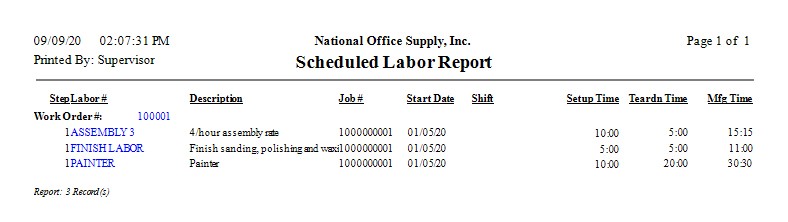 The Production Reports provide information that is important in planning and managing the inventory item, machine, and/or labor resources. More specifically, these reports provide information on the work orders that are still in process and the estimated quantities of inventory items and machine or labor resources to complete production. Each of the Production Reports has various options and criteria that provide a wide variety of work order production-related information and report formats. Read the information below to get a closer look at each of the Production Reports available in AccountMate. Projected Material Requirement Report The Projected Material Requirement Report lists the jobs to complete for each component item. This report also provides data on the available quantities, manufacturing quantities, quantities posted to work-in-process, used quantities, and required quantities for each component item. You can refer to this report when managing and prioritizing the production jobs. This report can also help you determine the component items that have insufficient quantities to complete a job as well as the accumulated shortage quantities. You can opt to exclude from the report the component items with negative final net quantity value. You also have the option to include in the report the completed jobs. You may show in the report all the open purchase orders with backorder quantities for the inventory items that are included in the report. ![]() Work-In-Process Report The Work-In-Process Report contains information on the jobs for each work order that is in process. The specific information in this report includes the work order numbers, job numbers, parent item numbers and descriptions, work order level, order date, request date, start date, manufacturing step, work-in-process quantity, and total cost. This report serves as reference in identifying the outstanding work orders and in monitoring the cost of the jobs posted to work-in-process as well as in planning and managing the component resources availability. You can elect to include in the report only the master parent jobs, only the subassembly jobs, or all jobs. ![]() Projected Completion Report The Projected Completion Report provides information on the work-in-process transactions that are posted in AccountMate but are not yet finished. The specific information in this report includes the work order numbers, job numbers, item numbers and descriptions, work order levels, request dates, work-in-process quantities, start dates, average number of days to finish each job, and the estimated date to finish each job. This report comes in handy when you need to know the number of days it takes to complete the work orders that are still in process, when you need to assign priority to the work orders for completion, and when you plan the availability of resources needed to complete the work orders. You can elect to include in the report only the master parent jobs, only the subassembly jobs, or all jobs. ![]() Scheduled Labor Report The Scheduled Labor Report provides information on the required manufacturing time of labor components for each job that is posted to work-in-process. This report displays specific information including work order numbers, manufacturing step levels, labor component numbers and descriptions, job numbers, start dates, work shifts, setup time, teardown time, and manufacturing time. This report is useful in reviewing and planning the labor resources schedule. ![]() Scheduled Machine Report The Scheduled Machine Report provides information on the required manufacturing time of machine components for each job that is posted to work-in-process and when these machine resources are needed. This report displays specific information including work order numbers, manufacturing step levels, machine component numbers and descriptions, job numbers, start dates, work shifts, setup time, teardown time, and manufacturing time. This report is useful in reviewing and planning the machine resources schedule.