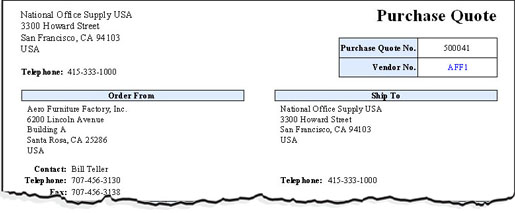 The Print Purchase Quote function allows you to preview and print purchase quotes. A purchase quote is a vendor's quotation showing a list of the inventory items that you wish to purchase from the vendor. You can provide the vendor with this document to inquire on the purchase price of a specific inventory item before making a purchase order. Purchase quotes, however, are non-binding and do not affect the inventory item quantities and vendor account balances.