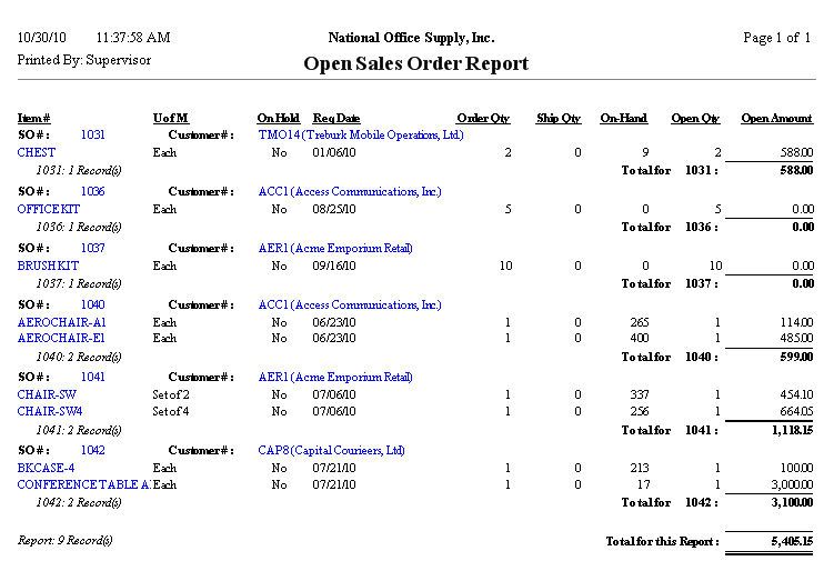 Click image to enlarge/reduce view Open Sales Order Report