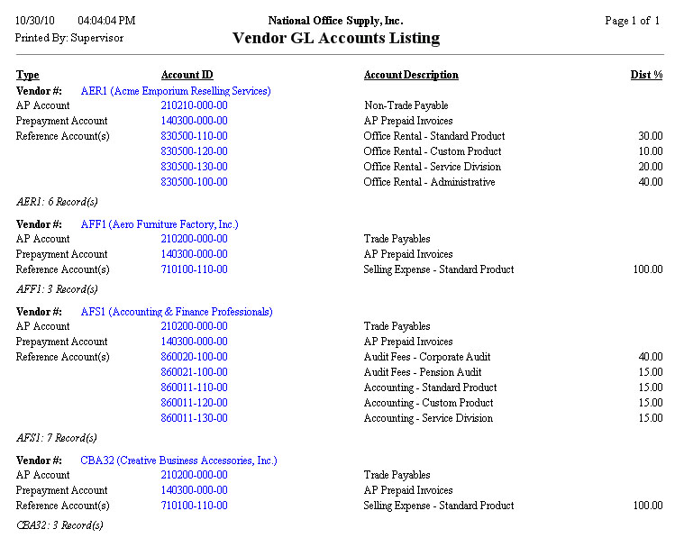 Click image to enlarge/reduce view Vendor GL Accounts Listing