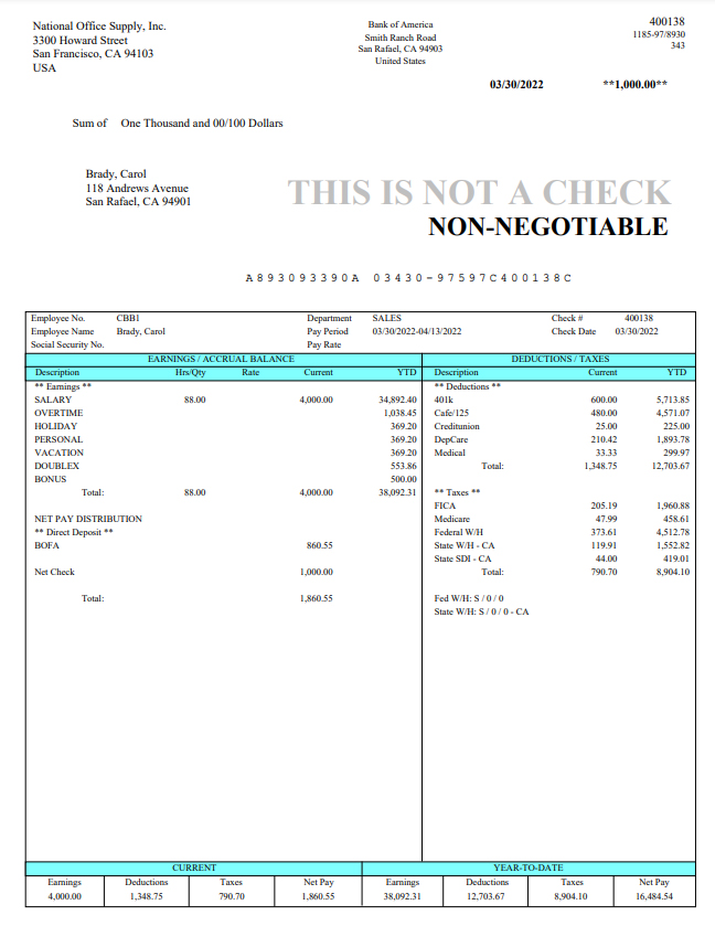 When the Generate Pay Stub File for E-mailing option is chosen in PR Module Setup during payroll check printing, AccountMate automatically generates a pay stub PDF file showing the check and stub and stores it in the company database. The Email Pay Stub function allows you to attach the PDF file to the email and sends it to the individual employees. This function is especially useful in situations when many, if not all, employees are working from home and are not physically present in the office to obtain the printed check stubs. Prior to e-mailing the pay stub PDF file, you may first view it from the Email Pay Stub grid. You also have the option to print the PDF file from the Preview window.
