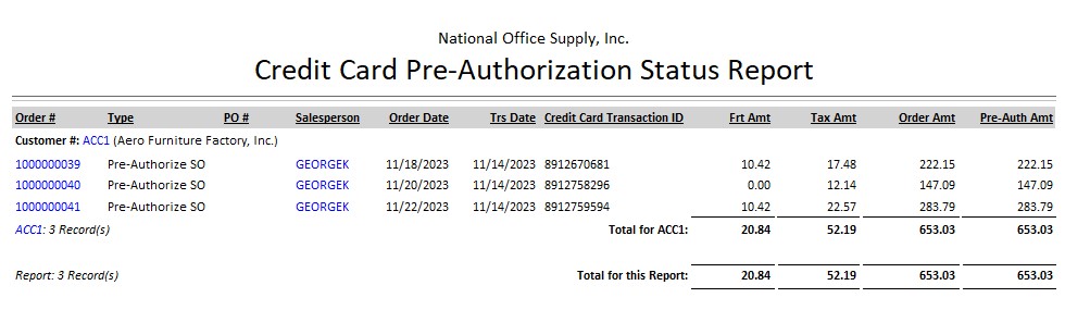 ![]() Credit Card Pre-Authorization Status Report The Credit Card Pre-Authorization Status Report lists the credit card pre-authorizations that are yet to be converted into credit card sales. This report makes it easier and faster to review the status of each credit card pre-authorization that is yet to be converted into credit card sales.