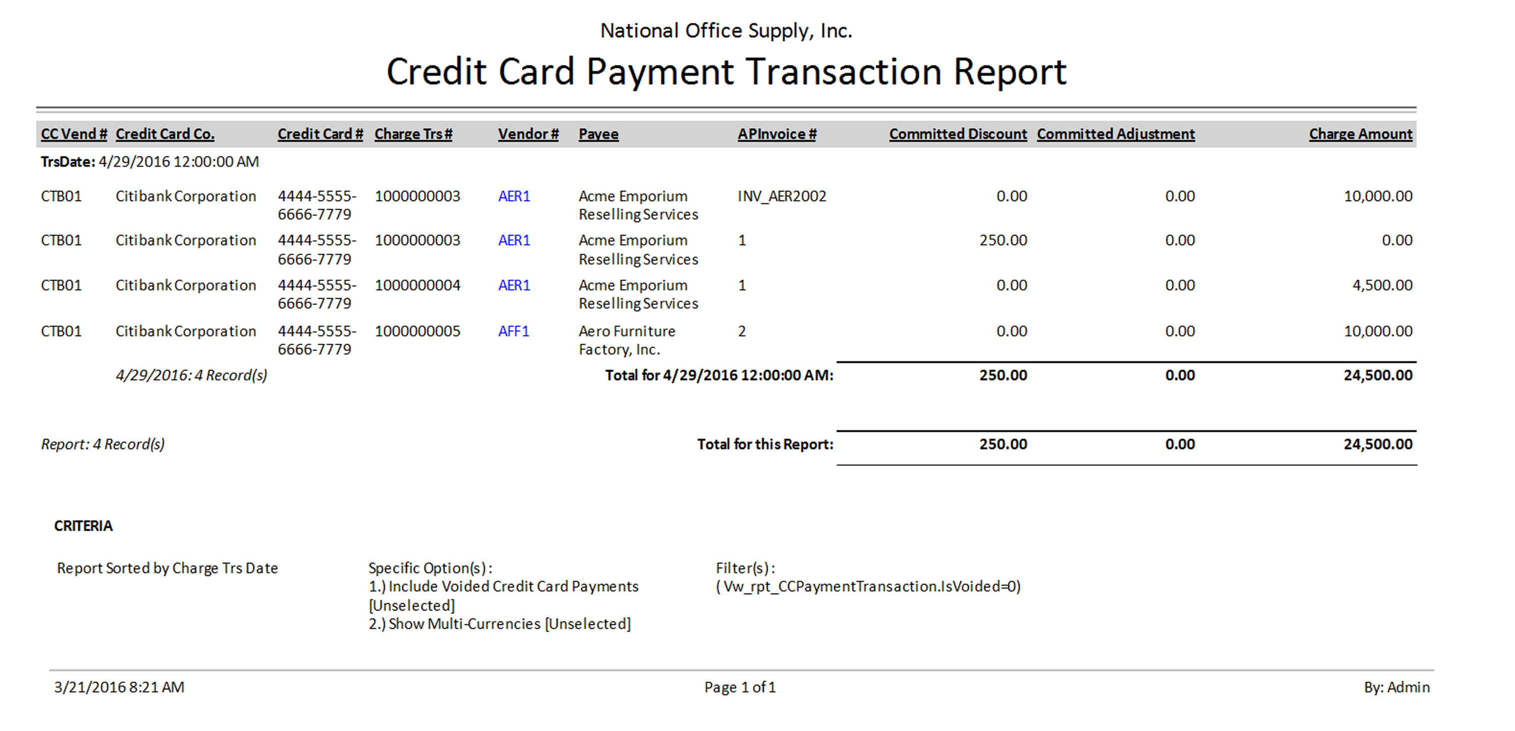 Accounts Payable - Credit Card Payment Transaction Report