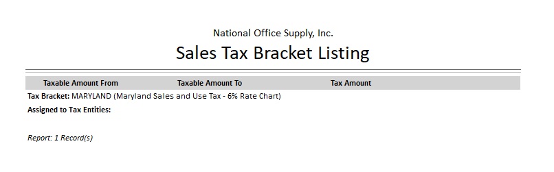 AccountMate allows you to set up sales tax brackets that can be assigned to customers which are set up using the Sales Tax Bracket Maintenance function. The calculation of sales tax is based on a range (bracket) of taxable amount of the sales. The Sales Tax Bracket Listing provides information on the tax bracket and the taxable amount range. The report is useful for reviewing the accuracy of the sales tax range and corresponding tax amount for each tax bracket.