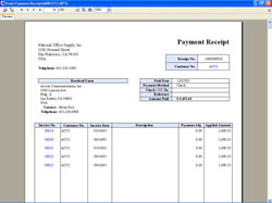 The Print Payment Receipt function allows you to generate receipts for payments collected from customers. You can print the receipt immediately after saving the apply payment transaction. You can use this report to acknowledge payments received from customers.