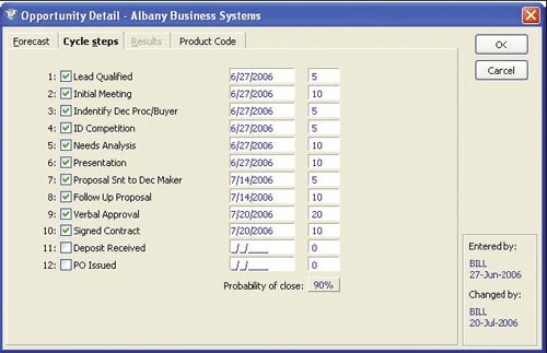 Contact information is easily searchable and manageable so you can access required records quickly in order to generate reports, mail merges or other customer service/management related activities. INFOtrac for AccountMate works with programs such as Microsoft Office so data can be merged and utilized in other programs to create custom mailings, mass e-mails, reports or other necessary business documents. INFOtrac for AccountMate also provides for superior customization. Fields and screens can be customized to the way your business work flows. Contacts can also be grouped and segregated into different categories, creating a flexible reporting system. Contact lists for mass e-mails can be created “on-the-fly” to insure quick and easy communication between you and your customers. ![]() Sales Cycle Steps