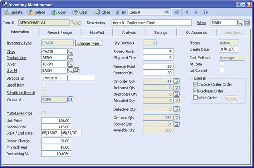 inventory item. Sales order and invoice line items can be entered