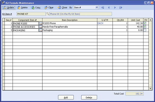 AccountMate 7 for SQL or Express Ease in Creating Kit Items