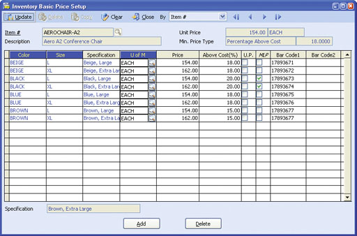allows for establishment of unlimited Multi-Level Prices by Price Code or Quantity.