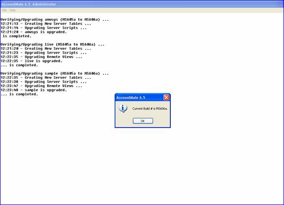 o Databases on AccountMate 6.5 for SQL, Build MS604a to AccountMate 6.5 for SQL, Build MS605a or higher; or