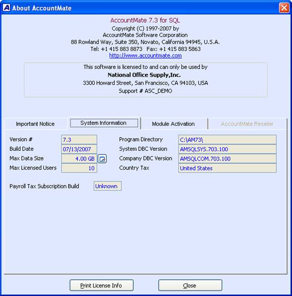 Support team at (415) 883-1019 or via e-mail at support@accountmate.com before you