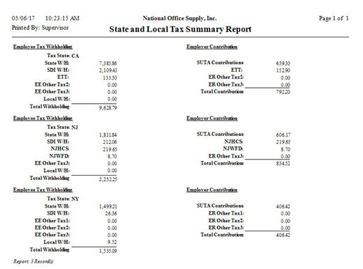 local withholding tax amounts of a particular tax state for a specific or range of check dates. This