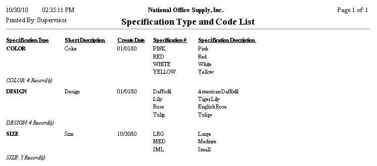 The Specification Type and Code Listing provide information on the specification types, including the associated specification codes and descriptions which are set up in the Specification Maintenance and Inventory Specification Maintenance functions. This report is useful in reviewing and updating the spEcification types and codes maintained in AccountMate. Note: You must activate the Inventory Specification module in order to use the